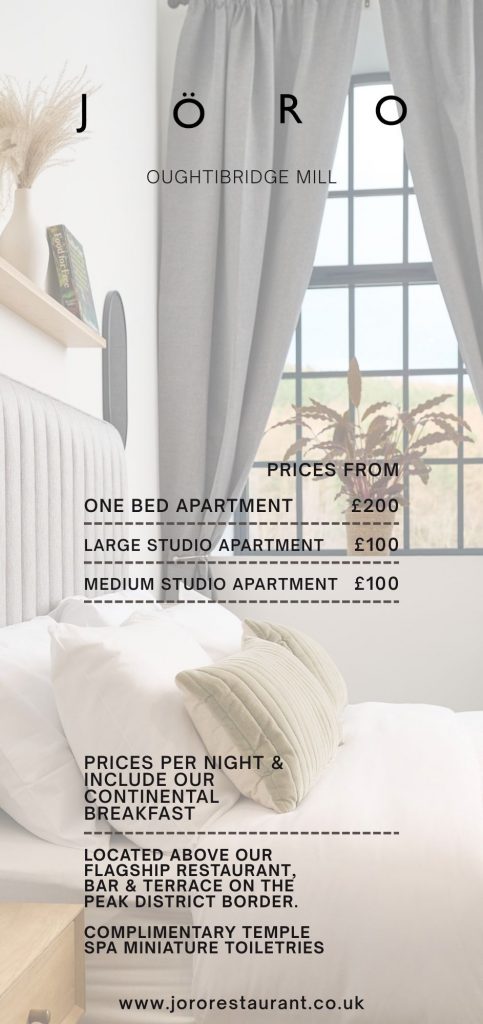 JÖRO at Oughtibridge Mill hosts 7 apartments above the restaurant on our first floor. Situated in the rolling peaks of Oughtibridge Valley, rural Sheffield.